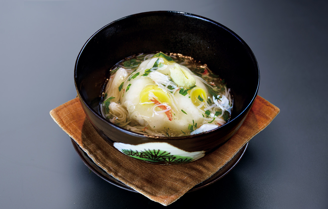 冬の京野菜の代表格『聖護院かぶ』。 日本最大級とも言われる大きさと、きめ細やかで真っ白い肌が特徴で、京漬物の千枚漬の材料としても有名です。主な産地である京都府の亀岡盆地にある篠地区では、朝夕の寒暖差が激しいため強い甘みを蓄えます。牡蠣などの旬の味覚にすりおろした聖護院かぶ、そして優しい餡をかけ熱々トロトロにいただきます。